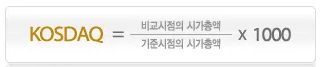 - 코스닥(KOSDAQ): 중소형 기업 중심의 시장으로, 코스피에 비해 변동성이 크고 성장 가능성이 높은 기업들로 구성된 지수입니다. 1996년 7월 1일을 기준으로 시가총액 1,000배로 계산됩니다.