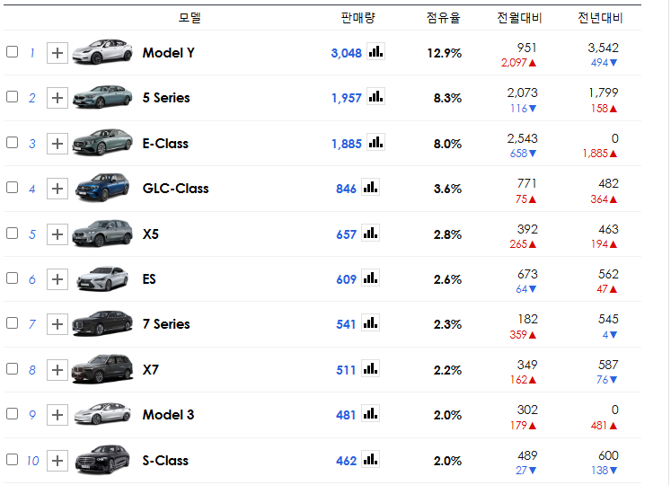 | 2024년 10월의 수입차 판매순위 TOP10 (1) | 2024.11.11 |