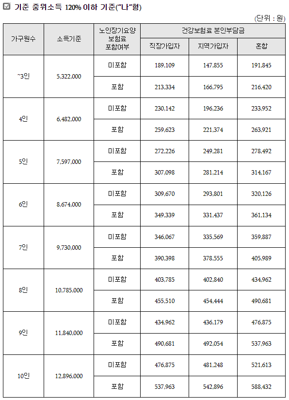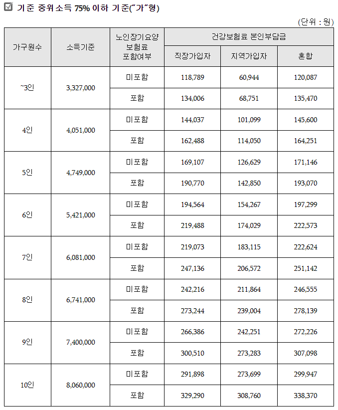 건강보험료 본인부담금 부과액 기준(노인장기요양보험료 제외)으로 월 평균 가구소득 금액 산정해 정부 지원금을 결정하는데요.