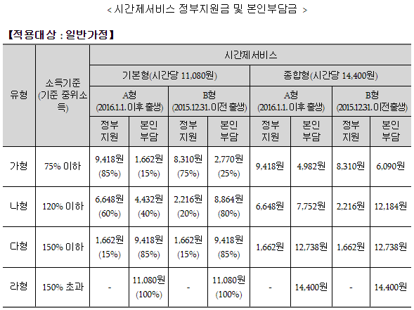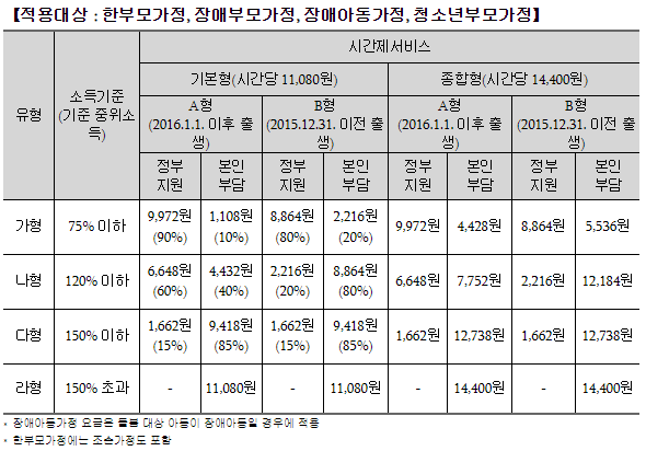 - ‘라’ 형 : 양육공백이 발생하지 않는 가정 또는 기준 중위소득이 150%를 초과하는 가구
