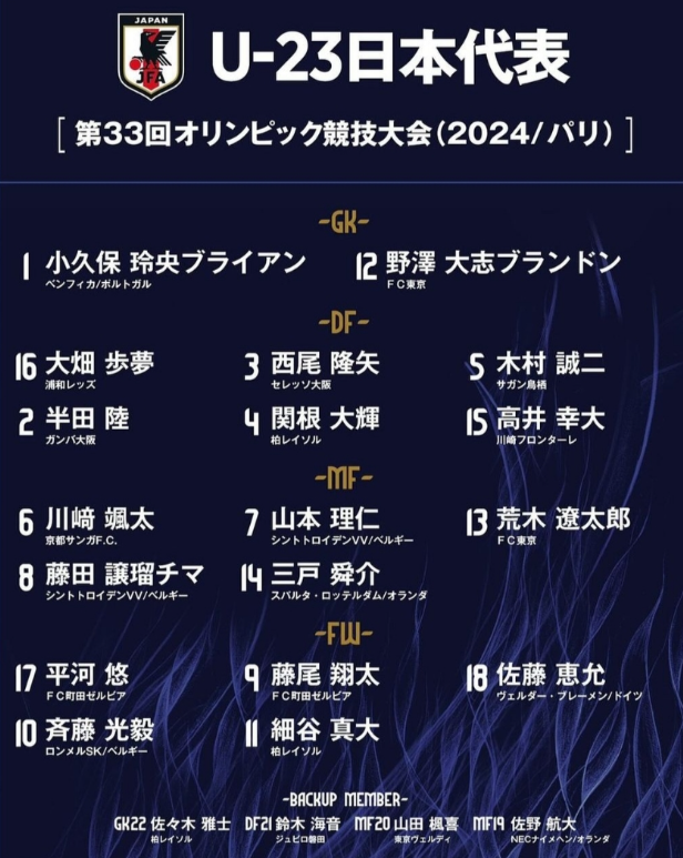 쿠보(레알 소시에다드)나 스즈키 유이토(브뢴뷔)는 올림픽행이 불발되었습니다