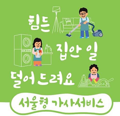 ‘서울형 가사서비스’는 임산부,맞벌이,다자녀 가정에서 아이와 더 많은 시간을 보낼 수 있도록 빨래, 설거지, 청소, 쓰레기 배출 등 집안일을 도와주는 서비스인데요.