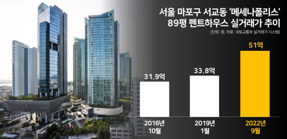 트로트 가수 임영웅은 2022년 서교동 메세나폴리스 전용면적 223㎡ 펜트하우스를 51억원에 매입했는데요.