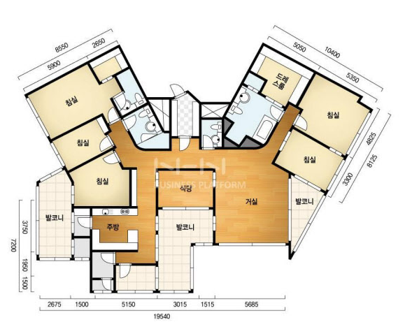 공간 배치는 ‘V’자 형태로, 대부분의 공간에 발코니가 있어 한강뷰와 시티뷰를 모두 감상할 수 있습니다. 보안이 철저해 연예인들에게 인기가 높습니다.