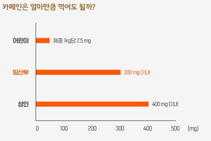 우리나라 식품의약품안전처에서는 임산부 하루 카페인 권고량을 300mg이하라고 말하고 있는데요.