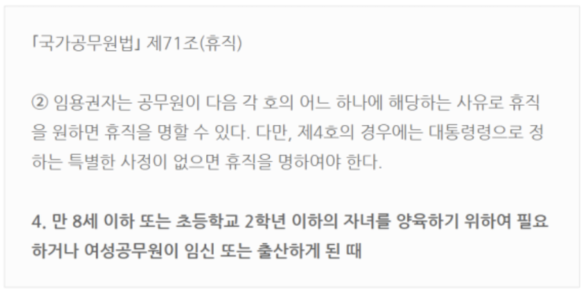 하지만 육아휴직은 경력단절문제로 쓰는데 눈치가 보이기 마련입니다. 그에 반해 공무원, 교사, 공기업은 육아휴직 제도가 조금 더 자유로워 많은 분들이 쓰고 계실 텐데요.