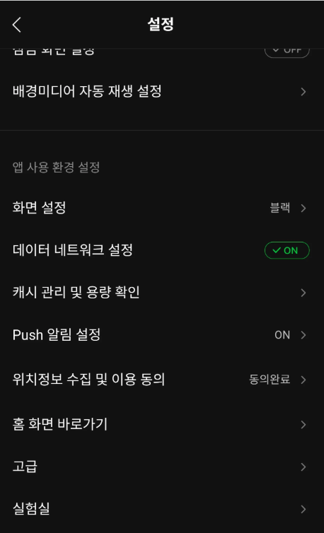 - 데이터 끊김 방지: 설정 -> Melon -> [셀룰러 데이터]가 켜져 있는지 꼭 확인하세요! 와이파이가 불안정할 때 데이터로 바로 넘어가야 끊기지 않습니다.