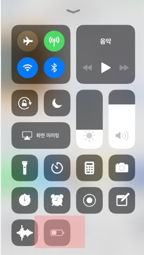 - 저전력 모드 해제: 휴대폰 배터리 아이콘이 노란색이면 '저전력 모드'입니다. 이걸 끄셔야 백그라운드에서 노래가 끊기지 않습니다.