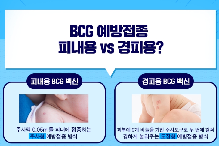 신생아 BCG 결핵 예방접종 피내용, 경피용 차이