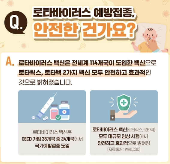 두 백신은 제약사만 다를뿐 효과는 같은데요. 세계보건기구(WHO)에서도 로타바이러스 감염증 예방에 효과가 있다고 인정하고 있습니다.