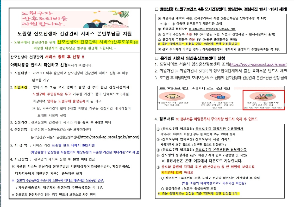 노원구 산후도우미 본인부담금 90% 환급 방법, 금액