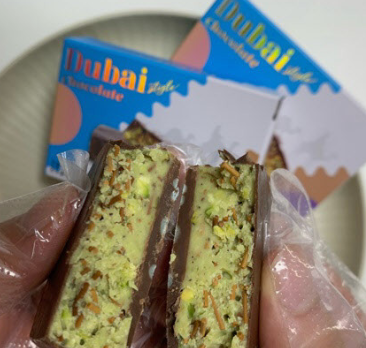 두바이 초콜릿은 아랍에미리트연합(UAE) 두바이의 ‘픽스 디저트 쇼콜라티에’라는 업체 제품인데요. 초콜릿에 피스타치오와 카다이프(중동의 얇은 국수) 스프레드를 넣은 제품입니다.