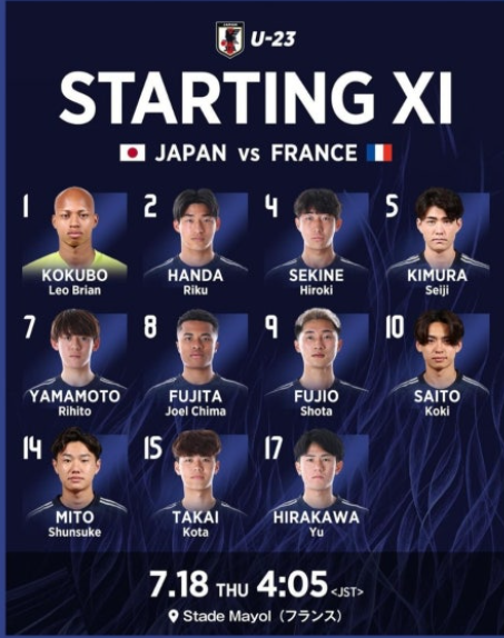 쿠보(레알 소시에다드)나 스즈키 유이토(브뢴뷔)는 올림픽행이 불발되었습니다